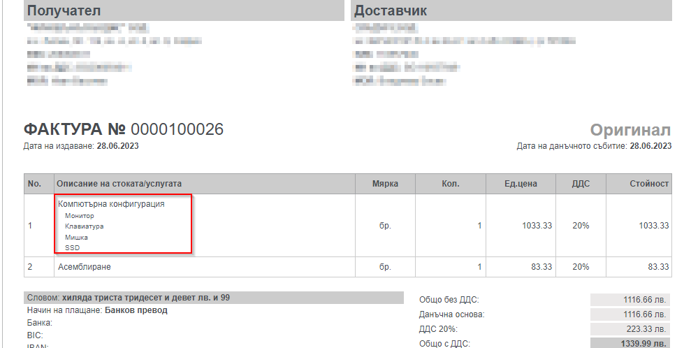 Стоките, към които можете да добавяте подробно описание, трябва да са създадени в Склад/Стоки, тогава при избор на стока ще имате икона в полето на стоката, когато кликнете на иконата ще се отвори прозорец, в който можете да въведете подробно описание.